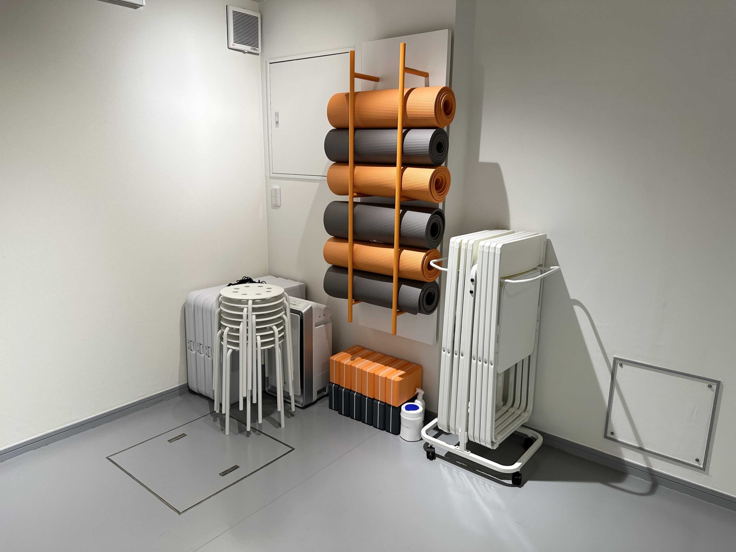 ※次の利用者のために必ず「清掃」「原状回復」した後にご退出願います。ご利用後は備え付けの掃除道具で清掃をしていただき、プロジェクター、音源、室内灯及び空調の電源を消してご退出ください。