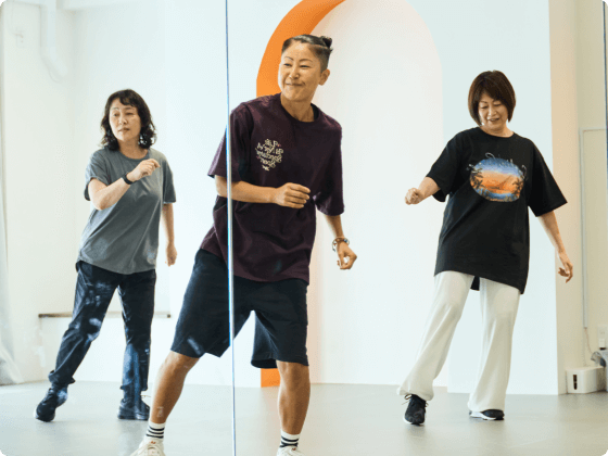 たっぷりストレッチをして体をほぐしたしたあとに歌謡曲でダンス!